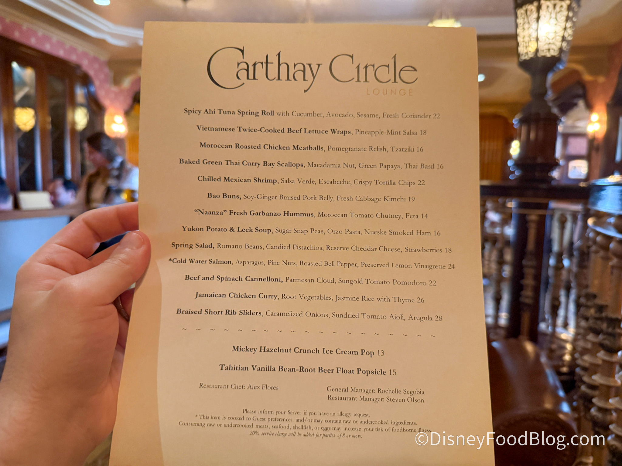 Disney4me Posted April 1 Report Posted April 1 We’re visiting the Disneyland Resort to check out a new menu being offered at one of the BEST lounges on property! Carthay Circle Restaurant I recently stopped by Carthay Circle Lounge at Disney California Adventure to try the new lunch menu, and it’s safe to say that I had PLENTY of thoughts! Should you visit this popular lounge and try out these new offerings? Find out in my review below! Atmosphere Tucked within the gorgeous Carthay Circle Restaurant (one of Disneyland’s best Signature Dining experiences), Carthay Circle Lounge still maintains a ton of elegance in a refined and upscale setting themed after the classic Hollywood theater where Snow White and the Seven Dwarfs premiered in 1937. Carthay Circle Lounge The restaurant is like a time capsule — featuring old-timey-looking furniture with pictures of Walt (some with stars of his time) on the walls. It also features mood lighting and a relaxed setting that takes you away from the hectic theme park atmosphere. Well, at least inside… The elevator There is an expanded outdoor seating area as well that provides views of Buena Vista street with plenty of fresh air to spare. Outside seating All in all, it’s a gorgeous space that transcends typical theme park dining — but what matters most is everything you can eat, so let’s get into it! Menu Carthay Circle Lounge offers a seasonal menu of Mediterranean-California light fare that is styled kind of like tapas — small bites that you can share or stack with other choices to create a full meal. These aren’t exactly the heartiest of dishes compared to the attached restaurant, but there are TONS of eats to choose from. Keep in mind that this is one of the pricier locations at California Adventure. NEW Menu As a lounge, you will also find plenty of signature cocktails, wine, and other alcoholic beverages that are a bit more elevated than most other offerings at the park. Of course, there are some great mocktails here as well. Beverage menu Of note, everything we tried on the new lunch menu is ALSO available with the dinner menu, so worry not if you’re trying to squeeze in time here during your next visit! With that said, let’s get into everything I tried! Eats First up, I grabbed the Braised Short Rib Sliders for $28. This beauty is made with caramelized onions, sun-dried tomato aïoli, and arugula. Braised Short Rib Sliders This dish comes with three sliders that are PACKED with flavor. The buns had a fantastic texture that absolutely held up well. They were crispy, yet still soft and fresh, and the beef was so tender and paired wonderfully with the spinach and sauce (which had subtle tomato flavors that neither overpowered the snack nor were ignored). A look inside The onions here provided a really great earthy tone, and I was really impressed by the balance of all these ingredients. These were fantastic sliders made with top-notch quality ingredients, and everything worked as intended in my opinion. I would absolutely get these again, and it’s safe to say this may be my favorite thing that I tried during my review — and this is coming from someone who doesn’t usually opt for short rib options! 10/10, no notes Next up was the Green Tai Curry Baked Bay Scallops for $16. This is made with macadamia nuts, green papaya, and Thai basil. Green Tai Curry Baked Bay Scallops Served in a shell, the presentation here is visually pleasing and inviting. As for the taste, it was very citrusy (even before applying the lime) with a surprisingly subtle kick. The bread crumbs provided a nice crunchy texture, and the scallops were cooked perfectly to give you that soft versus crunchy combo you’d expect when ordering this dish. The nuts also give the scallops an extra dimension, but there aren’t a bunch. You get an earthy aftertaste, but the scallops are allowed to shine. A closer look at the scallops The basil cut through quite nicely with a freshness that helped keep everything light, but ultimately, I wish this flavor provided a bit more boldness, as it got lost within the fishiness of the scallops. Still, this is a solid dish and will likely appease seafood lovers. I really dug the fresh flavors happening here, and I appreciate that it’s a light option. I wouldn’t say it’s filling, but if you get it with something else, you should be fine. If you don’t like scallops, you won’t like this. Eat it altogether Next, I tried the Beef and Spinach Cannellonis for $22. This is made with parmesan, sungold tomato, and pomodoro. Beef and Spinach Cannelloni’s I found this to be rich and tomato-forward. This was the heartiest thing I tried, making the cost stomachable. Be warned that this is fairly acidic thanks to all that tomato. Each tomato element tastes differently, and the cherry tomatoes added a sweetness I really loved — but I couldn’t help but get distracted by the tomato acidity. The arugula cut through the acidity at least, and the fried parmesan added a fun, cheesy element that was almost a bit bitter. Tomatoes! The meat was very tender and worked in tandem with the soft pasta for a dish that melts in your mouth. There are also peas in this, and they’re fine, but I felt they were included just to combat some of the tomato. There is just so much tomato here that I felt more herbs would’ve been appropriate. This was probably my least favorite of the three, but it was still pretty good. The Quality at this restaurant is just so good that even the things I wouldn’t get again were pleasant. There’s a lot happening here Finally, for dessert, I got the Tahitian Vanilla Bean-Root Beer Float Popsicle for $15. This comes with the leftover root beer in a side cup to enjoy. Tahitian Vanilla Bean-Root Beer Float Popsicle Now THIS is a fun way to do a root beer float! It has a great crunch on top thanks to those earthy Tahitian beans, but if you’re worried about those, just dunk the popsicle in the root beer, and they